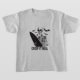 Halloween T Shirt A skeleton in sunglasses, holding a surfboard, with bats flying around.