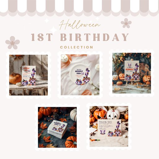 Celebrate your little one’s milestone with this adorable Halloween-themed 1st birthday invitation! Featuring pastel spooky characters like cats, bats, ghosts, pumpkins, cupcakes, and candles in soft purple and orange tones, this design is perfect for a not-so-scary celebration. Fully customisable with name, date, and party details. Ideal for baby girls turning one during the Halloween season or for any fall birthday bash with a whimsical spooky twist.