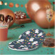 Some cute dark blue paper plates with the pattern of two ghosts . Ideal for an October baby shower or aa kid Halloween party .