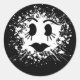 Adorable ghost face sticker featuring bold splatter for Halloween fun.