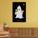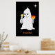 Cute Halloween Ghost & Pumpkin on Black Poster