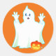 Cute Halloween Ghost & Pumpkin on Orange Classic R Round Sticker
