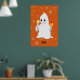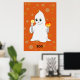 Cute Halloween Ghost & Pumpkin on Orange Poster