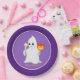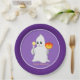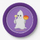 Cute Halloween Ghost & Pumpkin on Purple Paper Plate