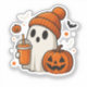“Cute Halloween Ghost with Pumpkin and Drink | Spooky Autumn Aesthetic Design”