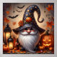 Cute Halloween Gnome with Jack-O-Lanterns and Bats Poster