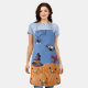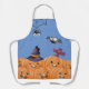 Halloween scene with jack-o'-lanterns lining the bottom of the apron and a cute kawaii bat and spider up top.