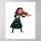 Cute Halloween kids costume trick and treat parade with witch girl with black dress and her violin.