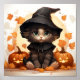 Cute Halloween Kitten Witch, Leaves And Pumpkins Poster