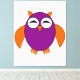 This awesome canvas print features a cute owl with its eyes shut as if it is sleeping and cute claws. Its body is purple and its wings, ears and claws and beak are orange. This cute owl is so adorable adults will love it just as much as kids.