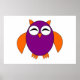 This poster features a cute owl with its eyes shut as if it is sleeping and cute claws. Its body is purple and its wings, ears and claws and beak are orange. This cute owl is so adorable adults will love it just as much as kids.