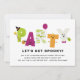 Very funny and cute Halloween invitation featuring a witch, vampire, mummy, pumpkin and ghost. Perfect for a costume or kid's birthday party.