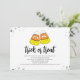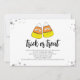 Host a funny Halloween party with this cute, fun candy corn invitation! Featuring stylish calligraphy script and a cool typography design, this invite sets the perfect tone for a trick-or-treat celebration. Designed for fall autumn parties with kids or adults, it showcases a whimsical cartoon illustration, a simple minimalist layout, and playful orange striped accents. Get ready for a spooktacular night—personalise your invite today!