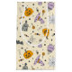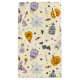 This cute Halloween pattern features a delightful mix of spooky and sweet illustrations scattered across a light beige background. The design includes playful Halloween elements such as a purple witch's hat adorned with stars, pumpkin-shaped candy, whimsical skulls and bones, and lollipops. Additional spooky touches include spiders hanging from webs, bats, tombstones, and potion bottles labelled "Magic." Small stars and polka dots fill the gaps, giving the design a cheerful and fun vibe. The soft colour palette, including purples, oranges, and yellows, adds to the charm, making this pattern perfect for a lighthearted Halloween celebration.