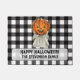 This cute Happy Halloween welcome mat has a vintage pumpkin ghost image and a customisable family name. You can change the message to say a simple "welcome" or something else! The black and white buffalo plaid background gives a cute country farmhouse feel. Greet visitors with an outdoor welcome mat that will enhance your yard decor.