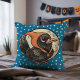 Decorate for Halloween with this chibi raven in a cute costume! With his cosy orange hat, he greets the full harvest moon beneath a starry sky of deep teal blue. Welcome this charming bird pillow into your kids’ bedroom decor for a sweet spooky season, or nestle this kawaii animal character on your couch to attract the crow spirits of benevolent cuteness.