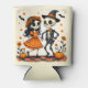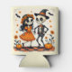 Cute Halloween Skeleton Couple in Orange Can Cooler