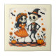 This whimsical Halloween design features an adorably spooky skeleton couple dressed in charming vintage-inspired costumes. The female skeleton twirls in a flouncy orange dress adorned with polka dots and sunflower-like accents, while the male skeleton sports a classic black suit with skeleton detailing, topped with a pointed witch hat and bright orange bow tie. Set against a chequered black-and-orange floor, the scene is brought to life with blooming marigold flowers, playful bats, and plump pumpkins—evoking both Halloween and Día de los Muertos aesthetics. The hand-drawn, cartoon-style characters give off a lighthearted, storybook feel, making this piece perfect for celebrating spooky season with style and warmth. Ideal for festive settings, seasonal decor, or any space that embraces quirky Halloween charm. AI generated artwork.
