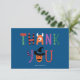 Bright colourful trendy typography design. Whimsical Thank You Card perfect for friends or family.