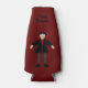This awesome bottle cooler features a digital art image of a creepy but cute Halloween Vampire. The vampire has spiky black hair, a red shirt and black jacket with blood red heart shaped buttons on it. He has a creepy smile and long white fangs. He also has yellow fingernails, purple socks and black shoes with gold buckles on them. His arms are open welcoming you for an evil embrace. There is custom text so you can include your own message.