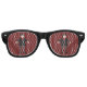 This awesome pair of Halloween party shades features a digital art image of a creepy but cute Halloween Vampire. The vampire has spiky black hair, a red shirt and black jacket with blood red heart shaped buttons on it. He has a creepy smile and long white fangs. He also has yellow fingernails, purple socks and black shoes with gold buckles on them. His arms are open welcoming you for an evil embrace.