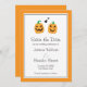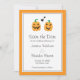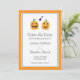 Cute Halloween wedding Save the Date announcement featuring two funny, laughing cartoon Jack o Lanterns with hearts as a symbol of love. Around is an orange and black border. Customisable black text. Add your wedding date, the name of the bride and groom, and where the ceremony takes place. For custom requests or help with customising please use the store contact link above.