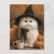 Cute Halloween White Cat Witch with Coffee Cup Postcard