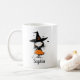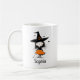 Whimsical Halloween artwork featuring a sweet little witch with a wide hat, orange skirt, and playful hand-drawn details. The black-and-orange palette and charming character design create a fun, festive look suitable for a variety of Halloween-themed products.