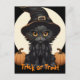 Cute black witches cat wearing a witches hat postcard, perfect for sending to all your friends to wish them a spooky Halloween