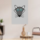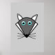This poster features a kawaii style cartoon of a cute grey Halloween Wolf with pointed ears, bright blue eyes and black nose surrounded by whiskers. This cute wolf is perfect for Halloween or for animal lovers.