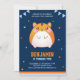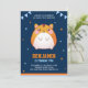 Amaze your guests with this cute birthday party invitation featuring an adorable little hamster with vibrant elements against a navy blue background. Simply add your event details on this easy-to-use template to make it a one-of-a-kind invitation. Flip the card over to reveal an elegant stripes pattern on the back of the card.