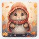 Cute Hamster in Autumn Scenery Whimsical Fall Square Sticker