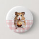 This button features an adorable hamster with a muffin on a pink gingham check background. It's a charming accessory to add a touch of whimsy to your outfit or bag!