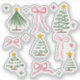 Adorable hand drawn Christmas trees, pink bows, and stars in a festive holiday pattern. Perfect for Christmas cards, wrapping paper, and seasonal gifts.