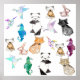 Cute Hand Drawn Geometric Paper Origami Animals Poster