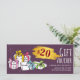 Cute hand drawn illustration of many gift boxes gift voucher with $20 in Value on golden scratch area - editable template. Include QR Code upload at the back to help customers connect and find out more about your business. Great for business corporate promotion.