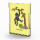 This cute gorilla youngster is hanging from a tree branch. Drawn in cute cartoon illustration style.
