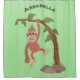 This cute orangutan baby is hanging from a tree branch. Drawn in cute cartoon illustration style.