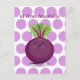 This adorable design features a cute smiling purple beet. Drawn in bright cartoon illustration style.