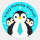 Cute Happy Birthday Boy Penguins Blue Neckties Classic Round Sticker