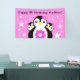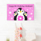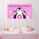 Celebrate her first birthdays with this whimsical banner, which features adorable, egg-shaped baby penguins sporting pink flowers on a starry pink background!
