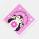 Cute Happy Birthday Girl Penguins Pink Flowers Napkin