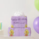 A pretty palomino pony is decked out in a rose and a daisy. The background is lavender and has an easily personalised message.