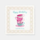 Cute Happy Birthday Tea Party Pink Whimsical cups Napkin