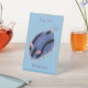 Cute happy blue nudibranch cartoon illustration pedestal sign