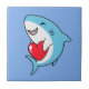 Cute Happy Blue Shark Holding a Red Heart Tile