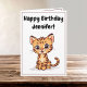 Cute happy Bengal cat kitten birthday card with customisable name and greeting - personalise with your own custom birthday greeting.