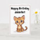 Cute Happy Cartoon Bengal Cat Kitten Name Birthday Card