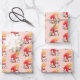 Wrapping paper sheets with an adorable image featuring a smiling cow, with a gold star balloon and some cake and a present.