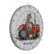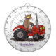 Cute happy cow driving a red tractor cartoon dartboard